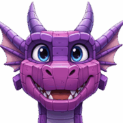 Minecraftia logo with green modern text in front of a full-body blocky purple dragon with wings